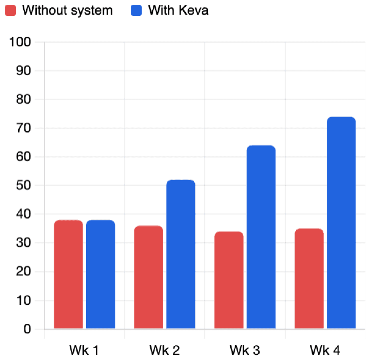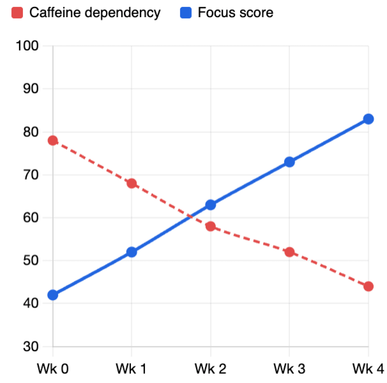 Self-reported focus scores across 200 members, tracked weekly. The curve doesn't lie.